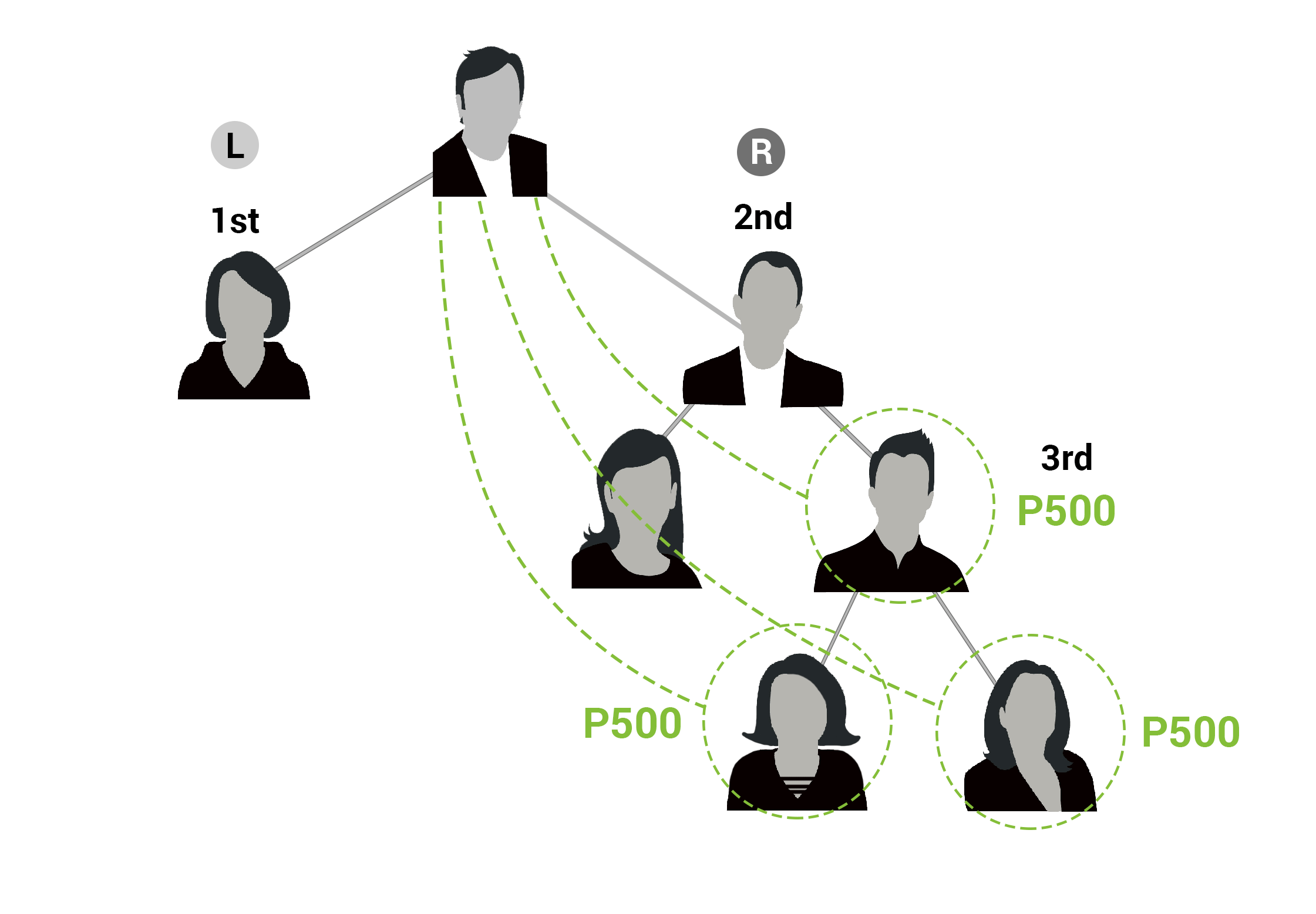Your infinity rewards start on your 3rd and UP DIRECT REFERRAL’S 1st and 2nd DIRECT REFERRALS